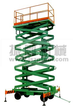 升降機(jī)的機(jī)械結(jié)構(gòu)一般由底座、臂架和工作臺三部分組成。底座采用相應(yīng)強(qiáng)度鋼板焊接而成;臂架為剪撐鉸鏈?zhǔn)酱怪鄙,采用高?qiáng)度無縫矩形管制作,強(qiáng)度高、外形美觀;工作臺能幾人同時操作,并設(shè)有安全護(hù)欄和低壓操縱屏,操作安全可靠。